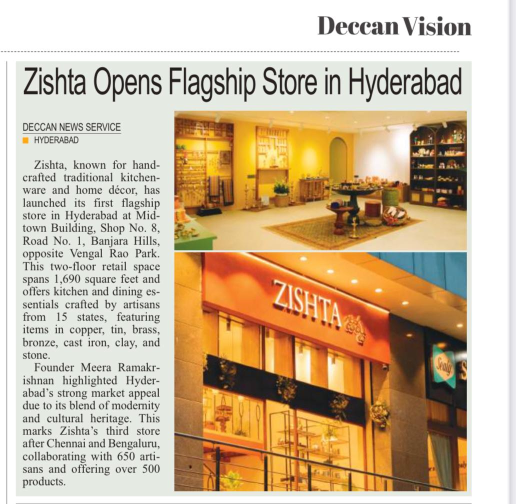Zishta featured in Adyar Times (Oct 5–11, 2025) for redefining Indian kitchens with handcrafted, sustainable cookware that celebrates traditional heritage and craftsmanship.